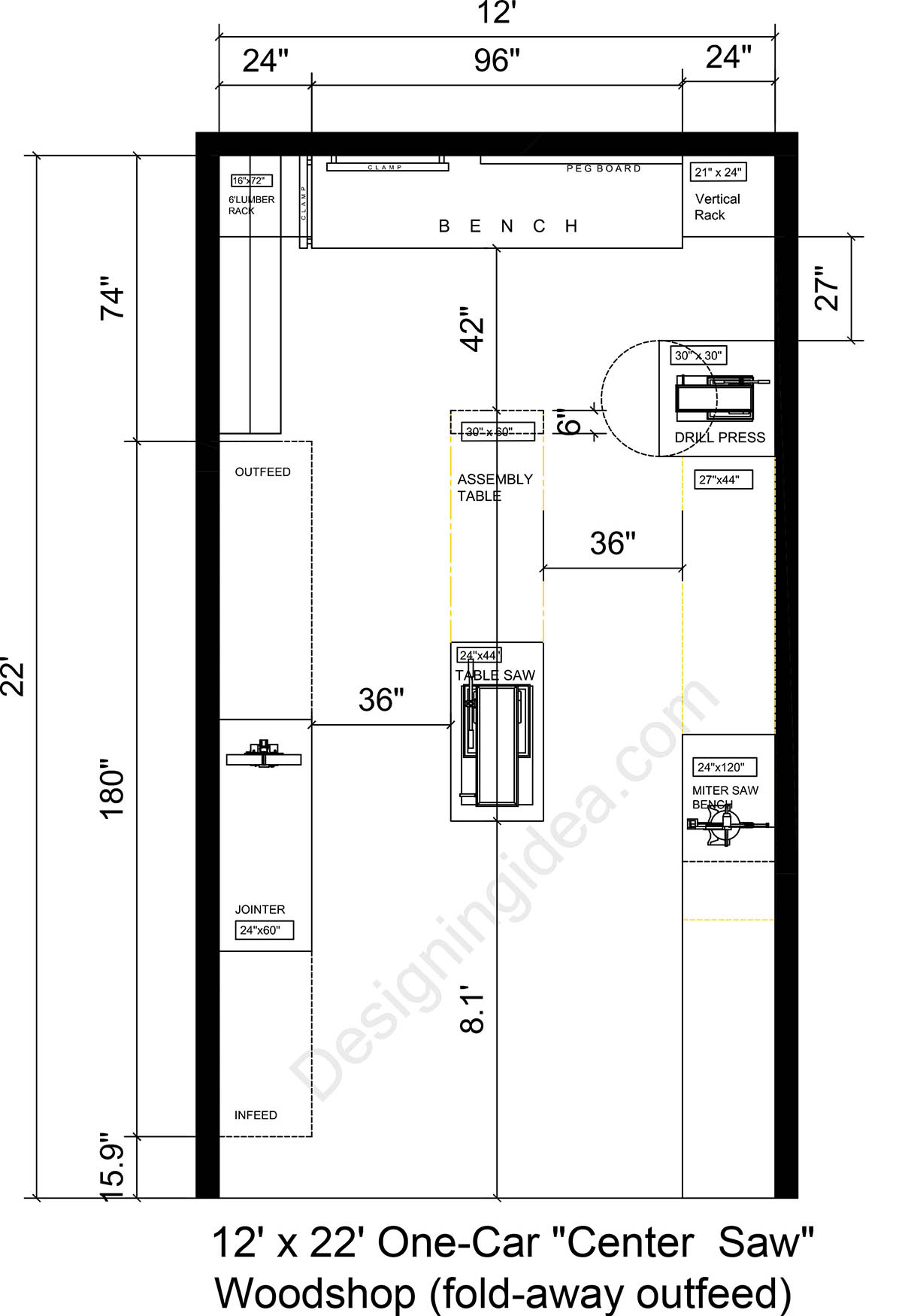 12×22 One-Car Garage With Center Saw Woodshop Layout